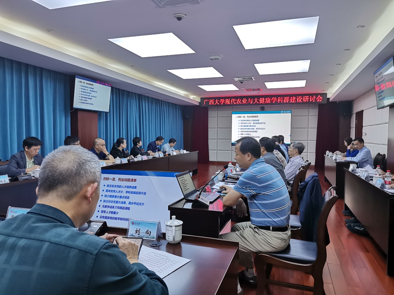 2022 年11月16日下午,罗廷荣副校长主持召开现代农业与大健康学科群建设研讨会。党办校办、校务督查办公室、发展规划处、教务处、科研院、财务处、国有资产与实验室管理处、后勤基建处等职能部门负责人、我院及农学院、动物科学技术学院、林学院、医学院等学院负责人、学科负责人参加会议。