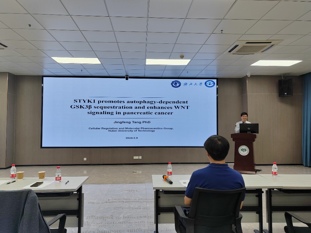 唐景峰教授作了题为“STYK1 promotes autophagy-dependent GSK3β sequestration and enhances WNT signaling pancreatic cancer”的学术报告。研究发现丝氨酸/苏氨酸/酪氨酸激酶1(STYK1)是自噬与WNT信号的共调控因子,并促进自噬依赖的GSK3β隔离而增强WNT信号。