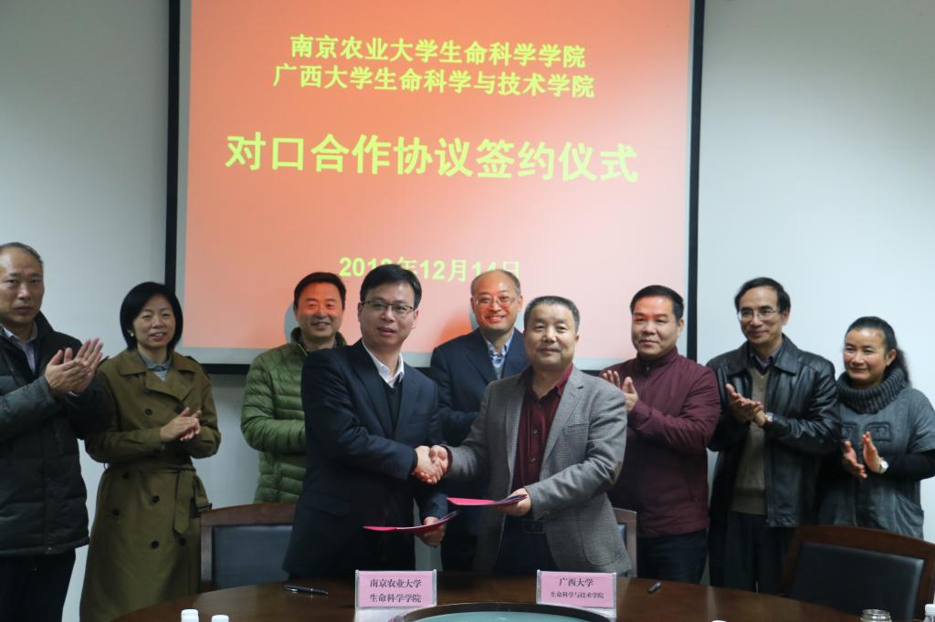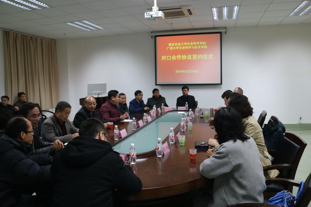 2018年12月14日下午,ylzz总站线路检测中心-南京农业大学生命科学院对口合作协议签约仪式在学院208会议室举行,南京农业大学生命科学院党委书记赵明文、副院长(主持工作)蒋建东一行、副校长、院长冯家勋、院领导班子其他成员、各系中心主任、副主任参加本次会议,会议由党委书记莫柏林主持。