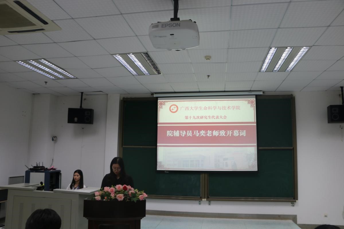 本次大会在激昂的国歌声中召开。在介绍完与会领导与嘉宾后,我院辅导员马奕老师致开幕词,她表示本次大会的召开,是我院研究生会工作承前启后、继往开来的一个新起点,并希望大家能够继续弘扬五四精神,以青春之我,奋斗之我,为我校“双一流”建设挥洒青春汗水,为中华民族伟大复兴绽放青春姿态!