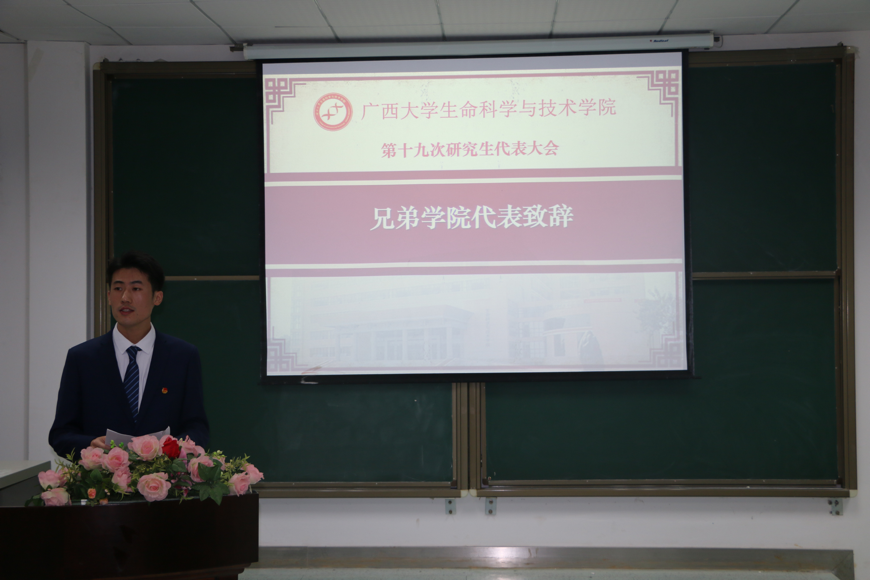 接着,校研究生会主席团代表任庆肖、动物科学与技术学院主席团代表杨安琪分别上台致词,表达了他们对本次学生代表大会的竞选者寄予厚望,以及对本次活动取得圆满成功的殷切希望。