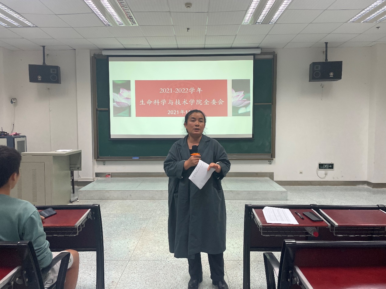 11月2日下午,我院2021-2022学年学生全委会在学院106教室召开。学院党委副书记曾海艳老师、团委书记周嫱老师、学工组马奕老师、俸雪老师、团委学生会、研会代表及各班级主要班干出席本次会议,会议由学工组马奕老师主持。