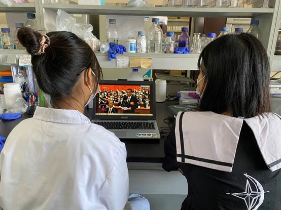 研究生第七党支部书记、2020级生物学硕士生廖思敏:收看开幕会过程中,我一下回想到2021年4月习近平总书记考察广西,在柳州视察了柳工集团和螺蛳粉生产聚集区,习近平总书记指出高质量发展,创新很重要。随着生产标准规范化水平提升,近年来企业开展线上直播带货模式,拓宽了螺蛳粉的销售渠道,如今螺蛳粉不仅成为网红美食,全产业链更是创造了30万个就业岗位助力乡村振兴。做为一个来自广西柳州的学子,我为家乡这些年来的发展变化感到骄傲,作为一名党员,我对未来光辉的前景充满了信心和期待。