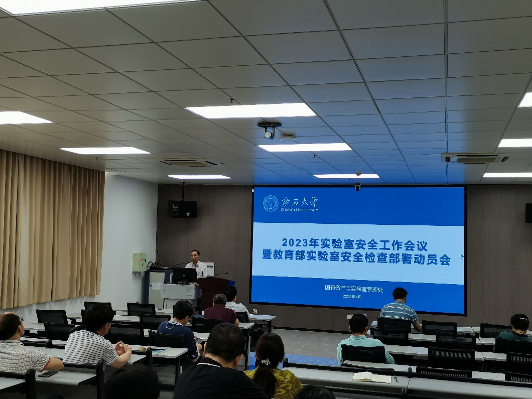 为深入贯彻落实教育部2023年高校实验室安全检查启动暨培训会和学校2023年实验室安全工作会议暨教育部实验室安全检查布置动员会精神,4月19日下午,我院在106室召开2023年实验室安全工作专题会议。会上覃健强副院长对国内典型实验室安全事故进行了分析,指出了学院存在的安全隐患,并对教育部2023年高等学校实验室安全检查的安排、要求、重点进行了解说。要求全体实验室师生要深刻认识实验室安全工作的重要意义,深入开展自查自纠工作,确保安全责任落实到位。