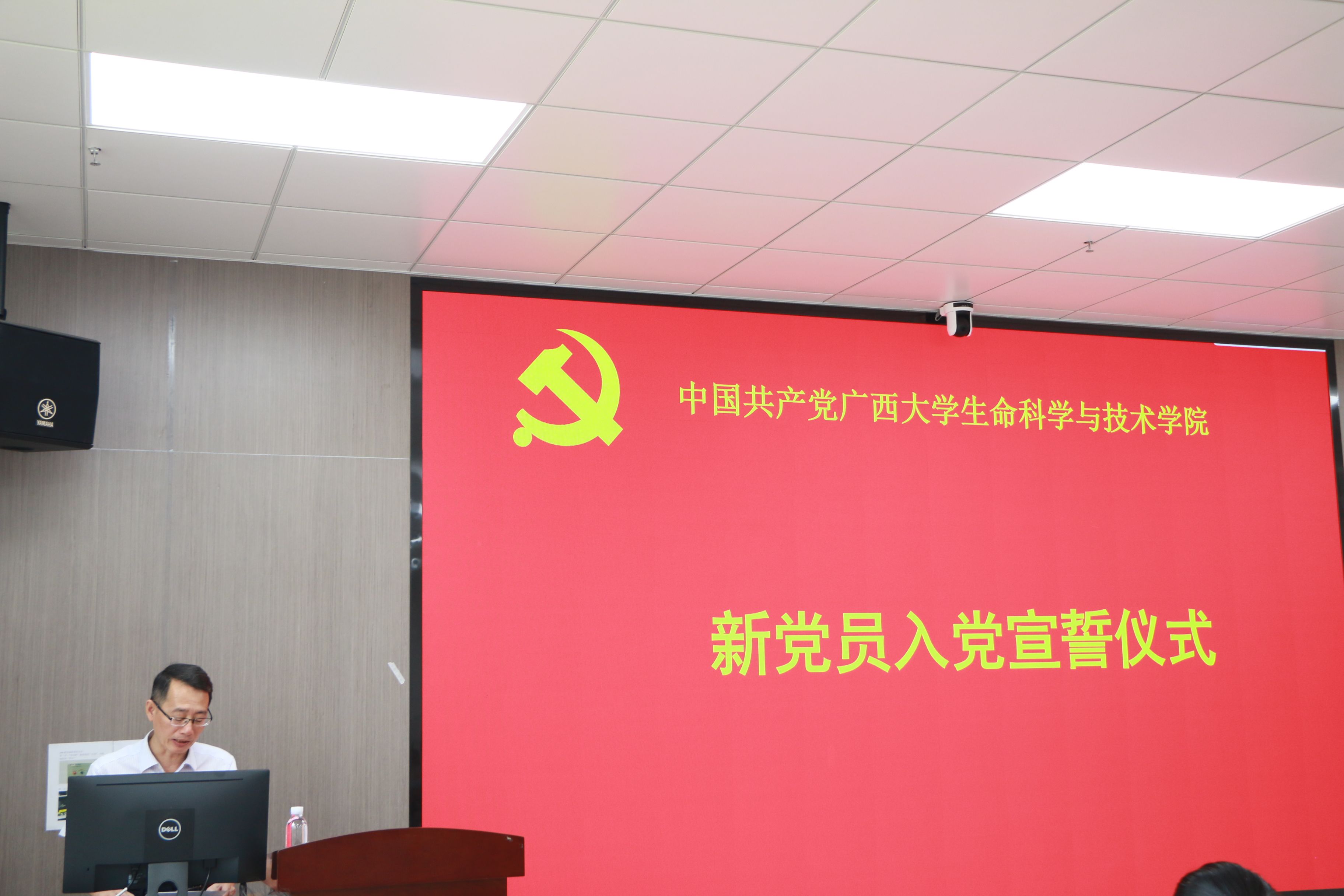 5月14日,学院党委在106教室举行新党员入党宣誓仪式。学院党委黄开勇书记、覃文月副书记参加了宣誓仪式,学院党委组织委员马奕主持宣誓仪式。