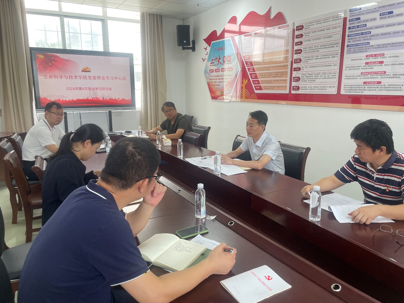 2024年5月20日,生科学院党委在201会议室召开理论学习中心组2024年第4次集体学习研讨会。学院党委书记黄开勇主持集体学习研讨会并作总结讲话。