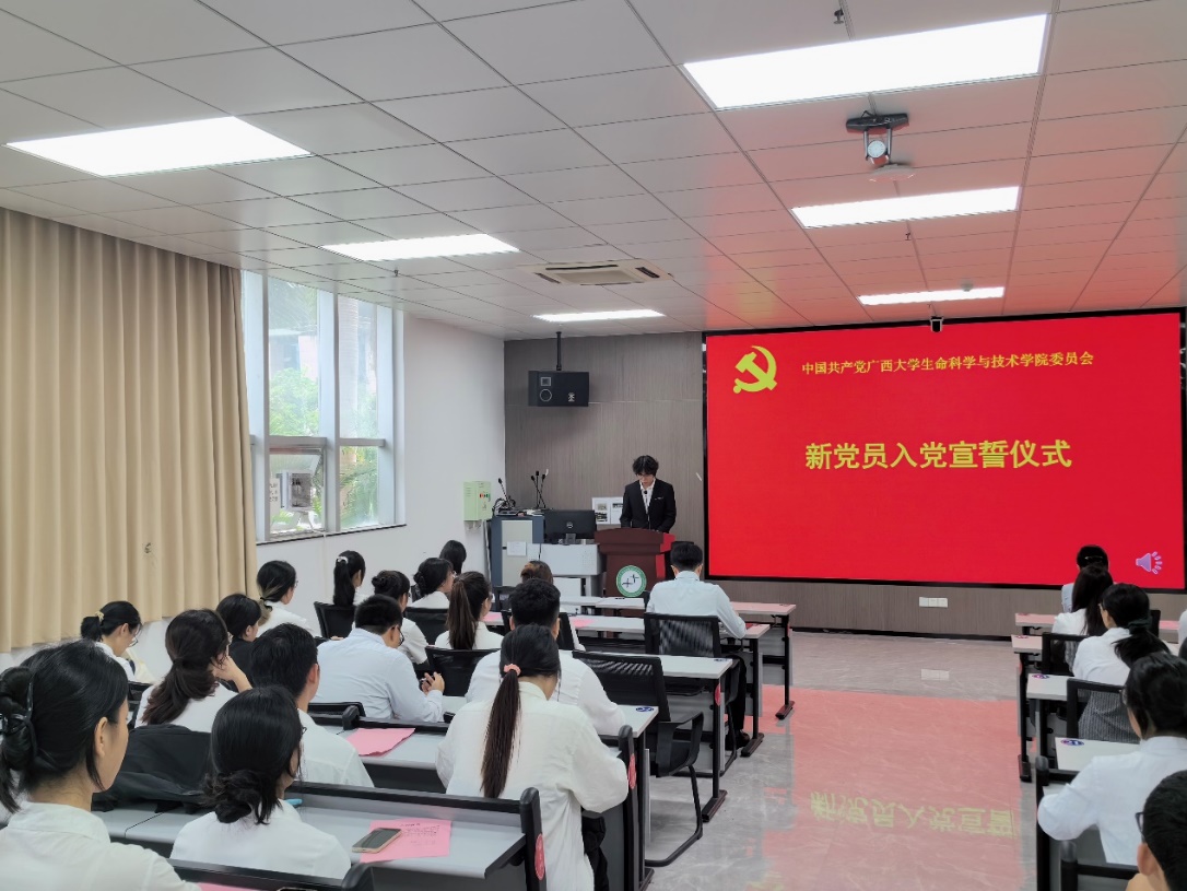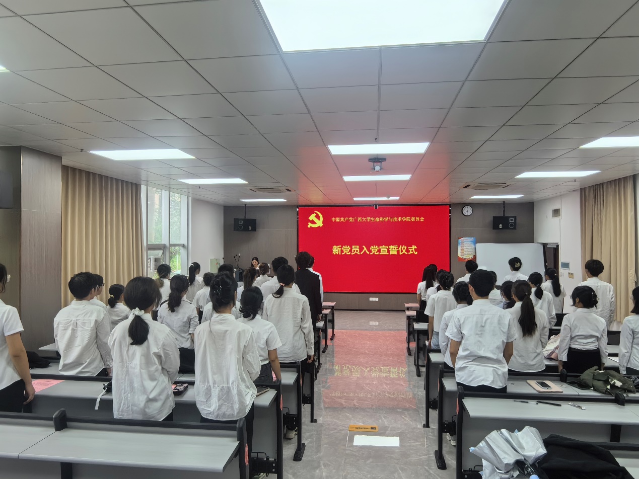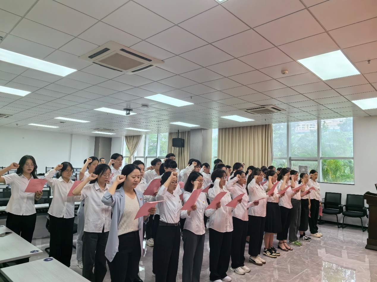 7月1日,学院党委在106教室举行新党员入党宣誓仪式。学院党委黄开勇书记、覃文月副书记参加了宣誓仪式,学院党委组织委员马奕主持宣誓仪式。