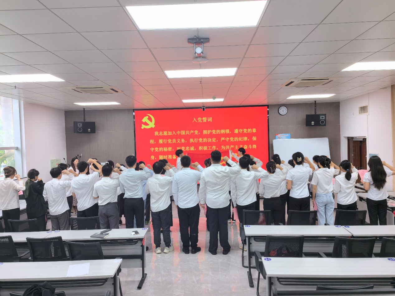 在覃文月副书记领誓下,全体新党员面向党旗庄严宣誓。