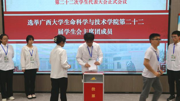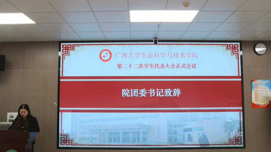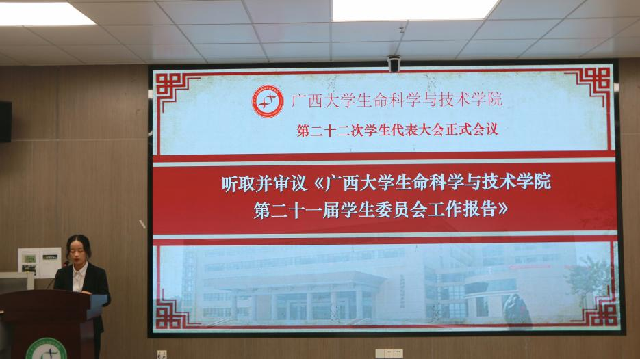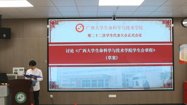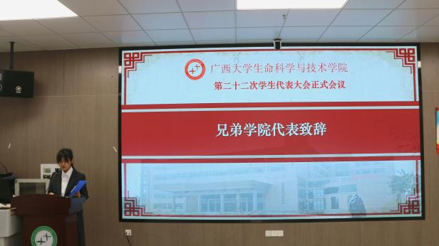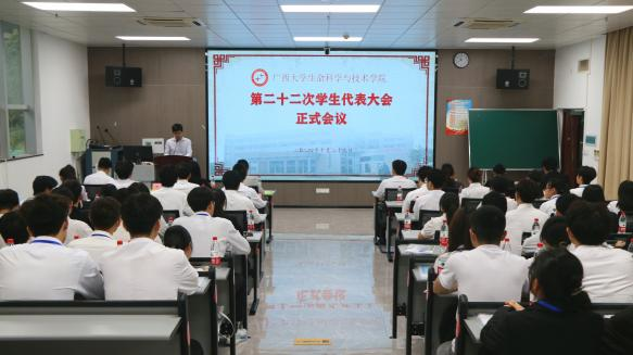 10月29日下午,我院第二十二次学生代表大会正式会议在学院106室顺利召开。学院党委副书记、纪委书记覃文月,团委书记马奕,学工组辅导员贺超、关家运,广西大学学生会代表,兄弟学院学生会代表以及我院各班级学生代表出席本次会议。本次大会由学工组辅导员贺超主持。