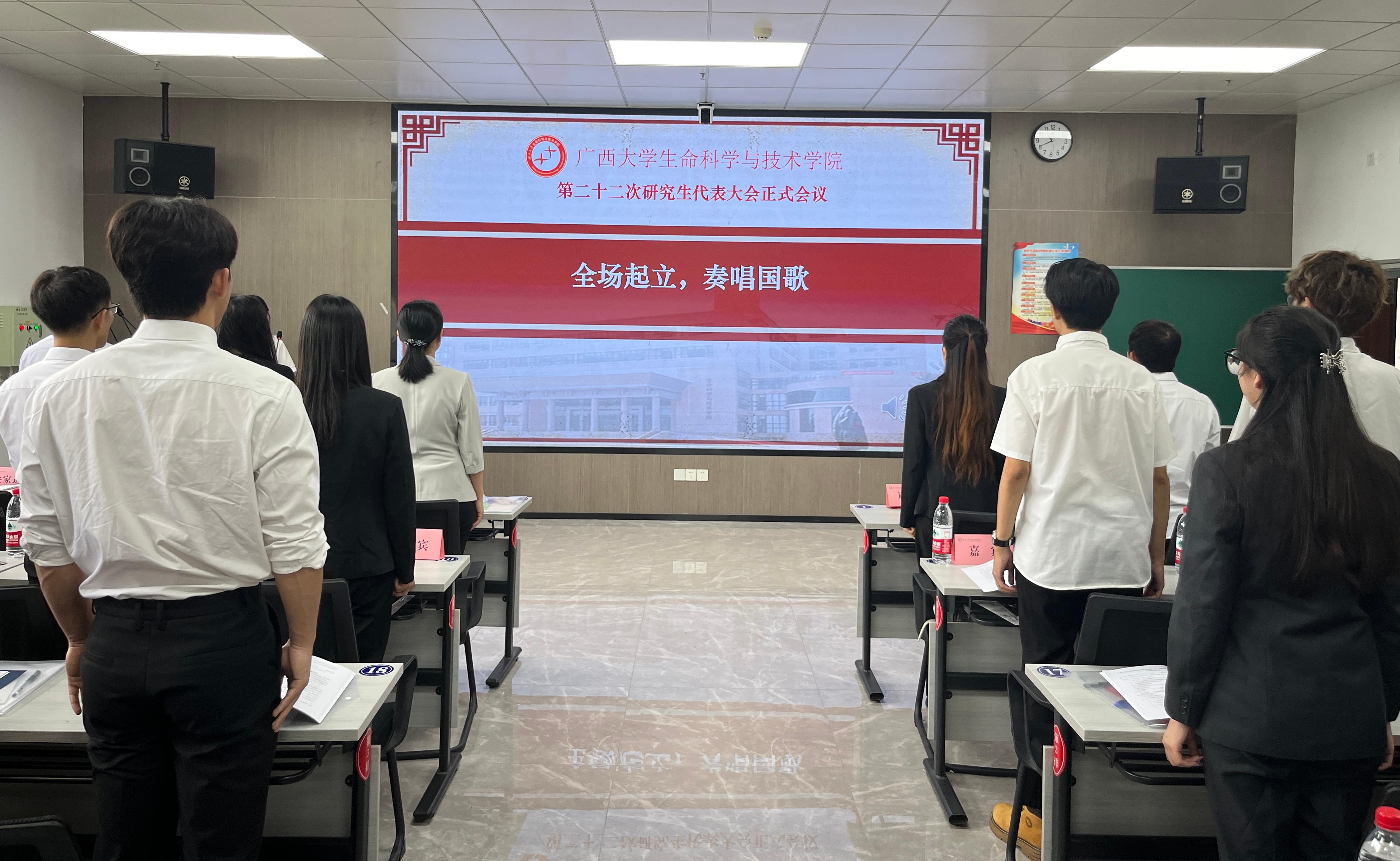 会议在激昂的校歌中顺利闭幕。学院新一届研究生会将以此次大会为新起点,继续围绕学院中心工作,以更加饱满的热情、更加昂扬的斗志、更加务实的作风,全心全意为师生服务,全面助力学院高质量发展。